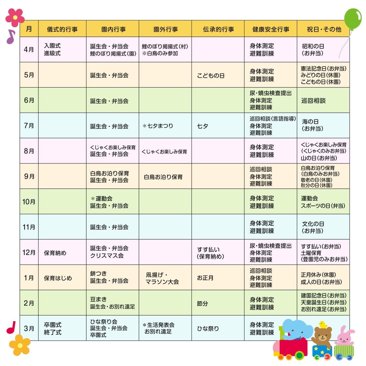 年間行事予定表